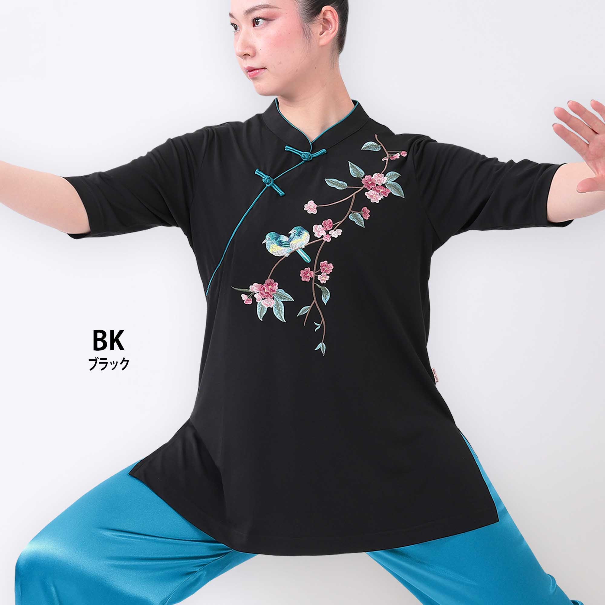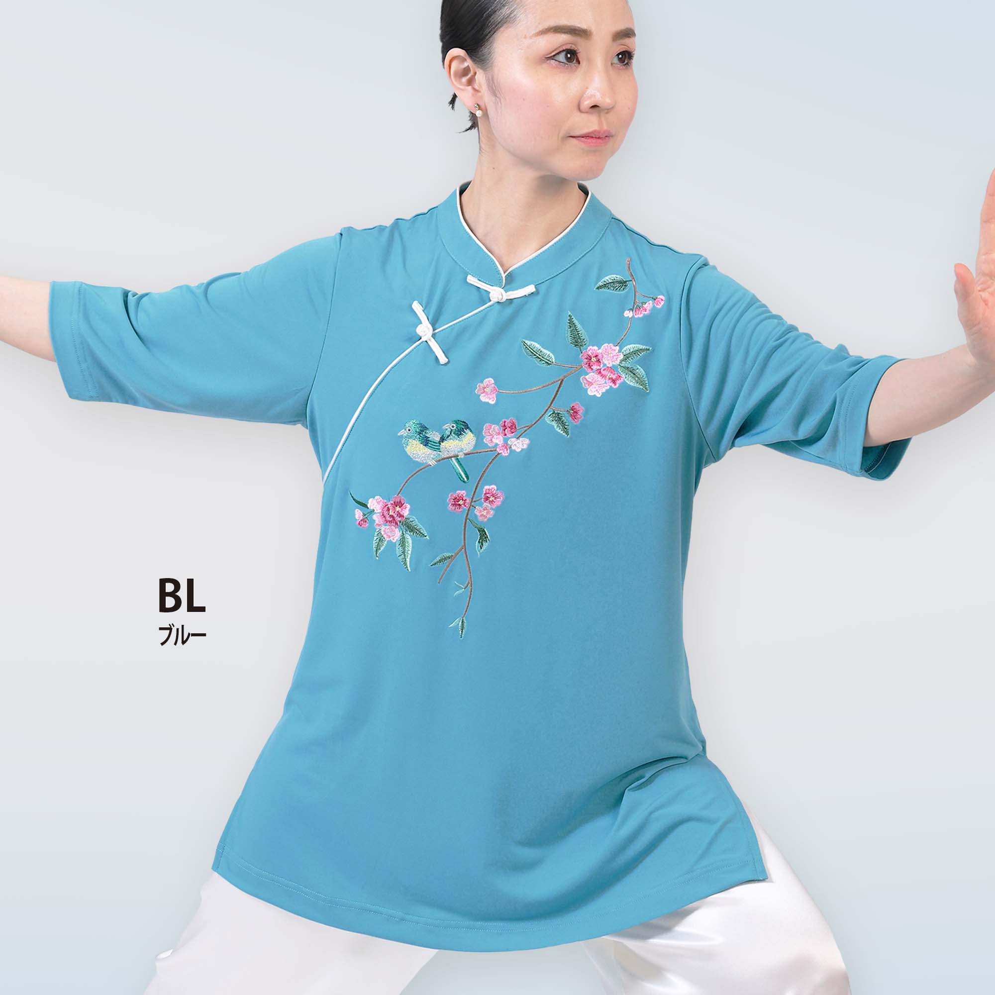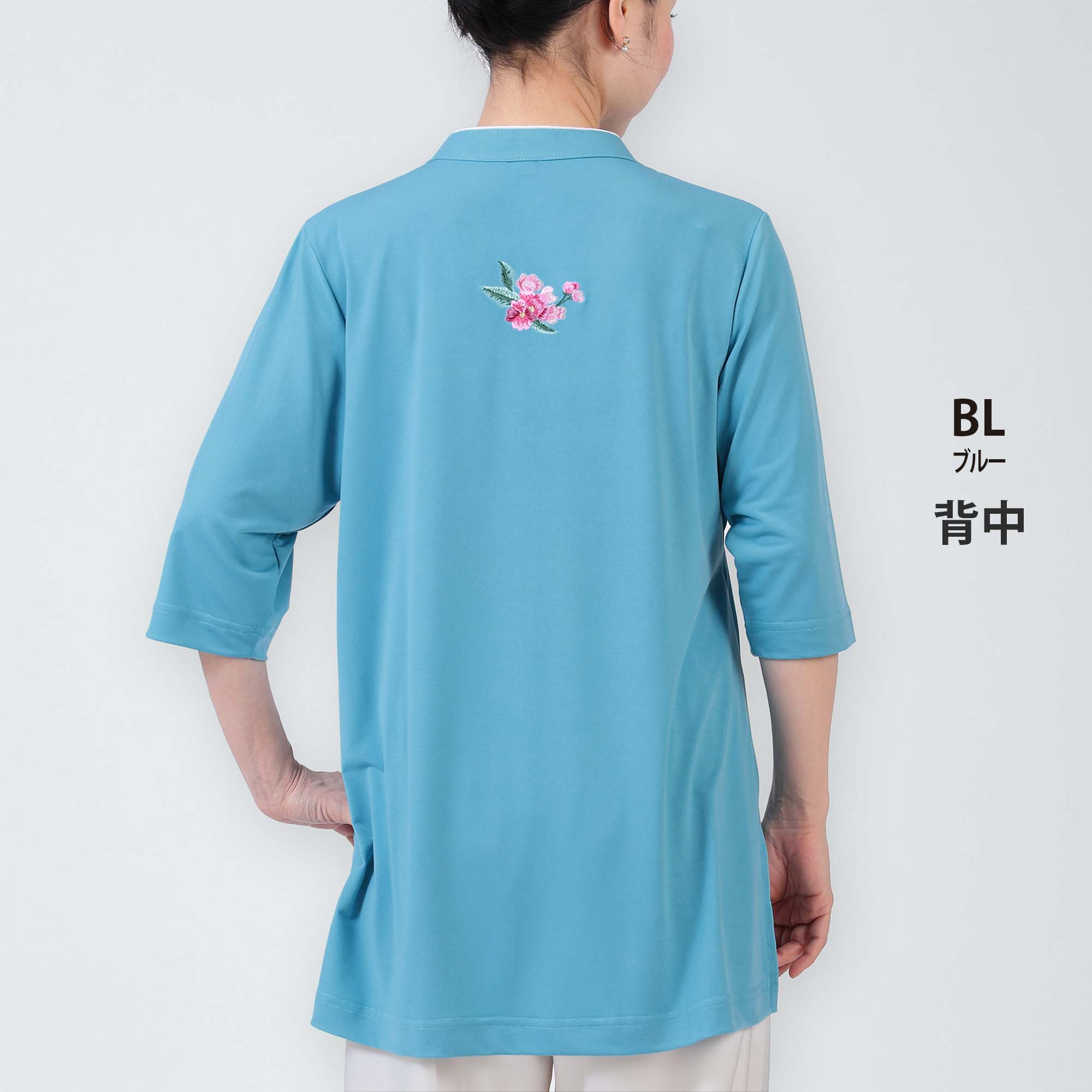 《ルリ鳥 》チャイナ衿 6分袖 刺繍