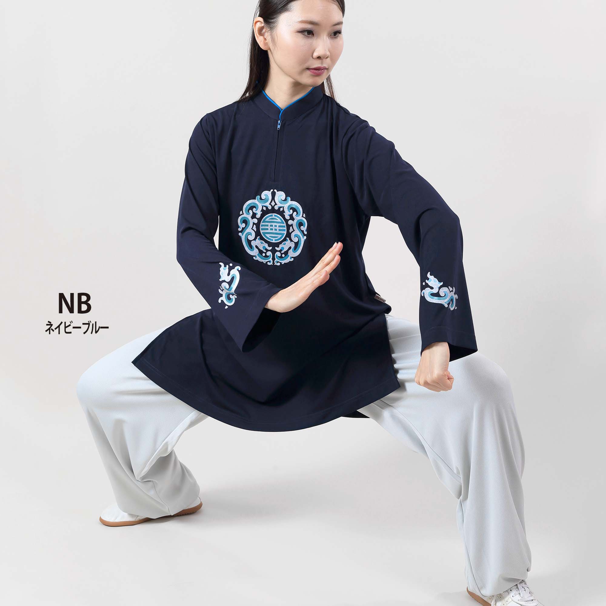 《長袍(ちょうぱお)》ファスナー長袖&ロング丈 プリント