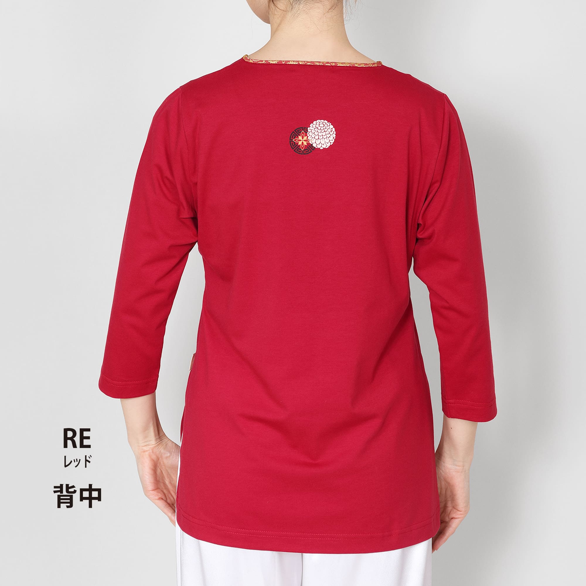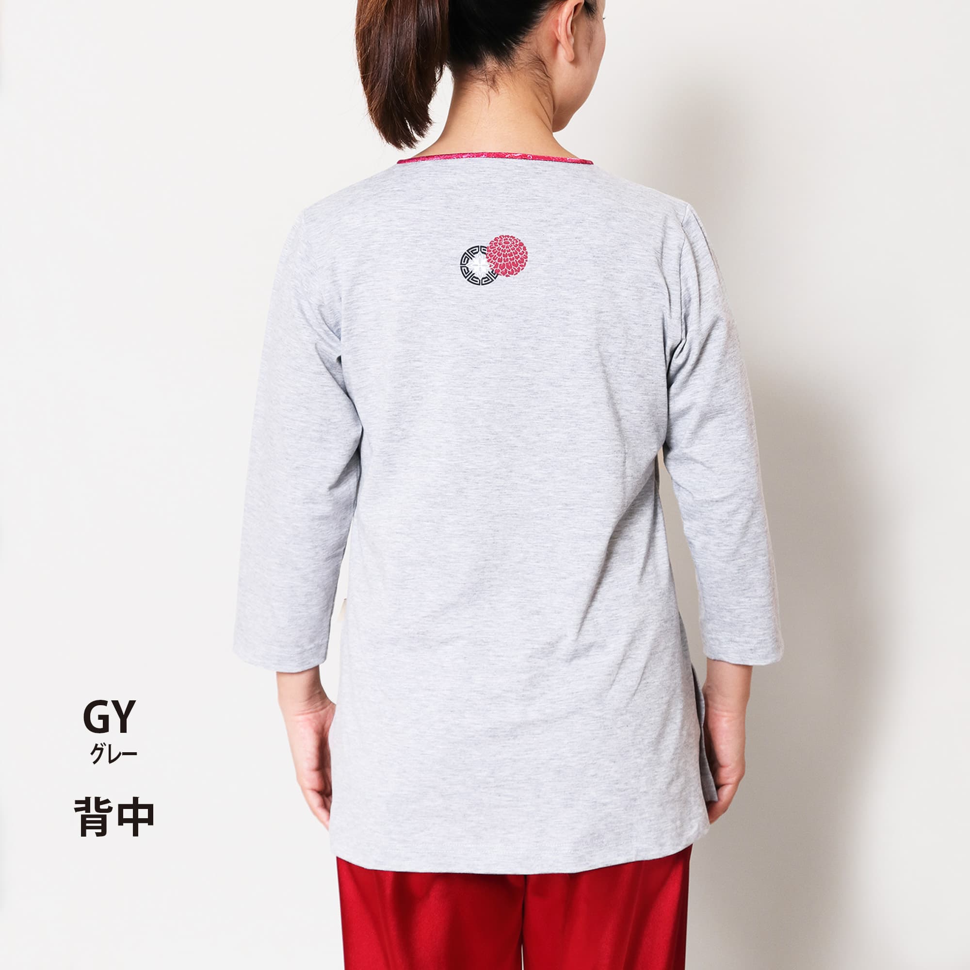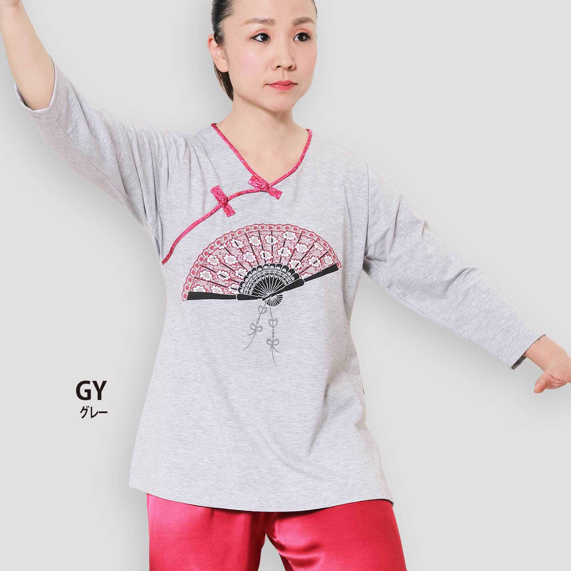 《太極扇(たいきょくせん)》Vネック 8分袖 プリント